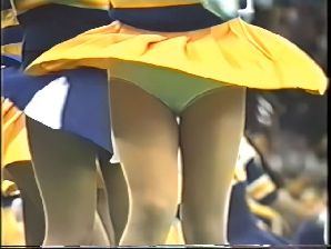 ※※チアの踊りの振り付けはハイキックが多いことで有名で、それが各大学の中でもダントツに高い人気を誇っている理由のひとつなのですが、この日はあらゆるアングルから狙って来る数多くのいやらしいレンズを目の前にして、チアも明らかに困惑していました。ほとんど脚を上げてくれません。それでも笑顔を絶やさないのはさすがです』