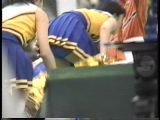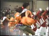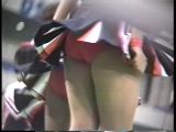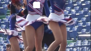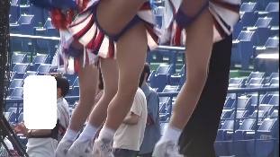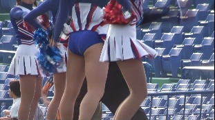 次は黒のスコートに赤のぴちぴちパンツがセクシーな※※※**です。体育会系の振り付けで、特に手前のむちむちした太腿がしきりにターンやお辞儀などを繰り返していて、目の保養になること請け合いでした。赤のチアもいて、こちらも動きは良く、ヒップシェイクやキックをさかんにやっていました。黒から青に着替えると、中身は青に変わっていましたが、今度もぴちぴちした感じだったので、たまりませんでした。お辞儀をすると、お尻の僅かにはみ出した下着がアップになり、いやらしく目の前にちらついていました。