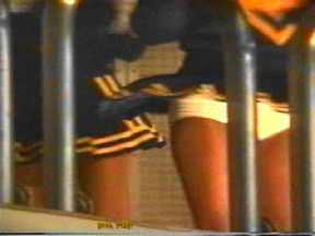 続く青スコートに白のトレーナーのZ條製紙はヒップシェイクやターンなど元気のいい踊りを披露してくれました。次の回では「学園天国」に乗せてお尻を半分食み出させながら眺んだり跳ねたりのちょっと過激なセクシーダンスでよかったでず。Y印もキックありターンありと非常にいい動きで、最後はスタンツを決めようとしましたがご愛嬌でした。最後の回では再びZ條がピンクのジャンパーで登場。フットライトを下からいやらしくお尻に浴びながら踊るさまはとても刺激的で興奮ものでした。時々後ろを向いてお尻をくねらす所が何ともいやらしくて堪りませんでした。Y印も負けじと「2億4千万の瞳」に合わせてとても激しい振り付けで観客を釘付けにしていました。その後超ミニが眩しいO子製紙、K土計画チアが入ってくると華々しさが一層増してきていよいよステージに上がると、先ず真っ赤なスコートのO子がカンカン帽を手に地味な振り付けながらターンをするとスコートの裾が思い切り広がって青いアンスコが丸見えになっていました。K土は昔のロカビリーに乗せてターンをするたびに眩しい純白のパンツが……。次もピンクレディーの曲に乗せてかなり激しい動きでお尻を突き出したりしてとても刺激的でした。O子は苫小牧から応援に来た青スコートに赤のトレーナーのチアがはにかみながら元気に踊る姿がとても可愛かったです。ターンをすると青のピチピチしたパンツが見えていました。