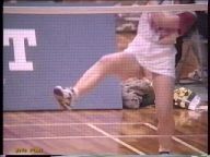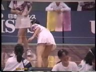『ダブルス戦に※※※電器の清楚系ポ二−テールの彼女とおかっぱの彼女が登場。ちょっとした動きに反応して顔を出す純白のアンスコがとても眩しくて堪りませんでした。特に、構えている時のアップになった股間を後ろで拝むのは何とも言えませんでした。*****のポ二−テールペアも果敢なプレイが多くて良かったです。