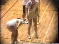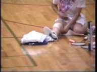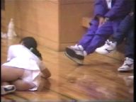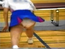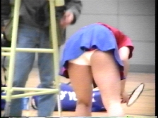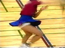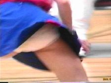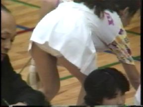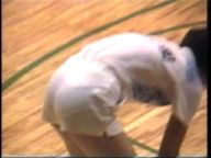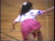 『前回の続編です。青紫のN電装のショートカットの癒し系の娘がむちむちと丁度良い太さ加減の太腿で飛び回り、試合の合間や終わりこは何気にアンスコを丸出しにしたり、ピンクのH銀行の娘が横っ飛びに脚を開くと後ろから凄いパンチラが見えたり、のっけから刺激的なシーンが随所に見られます。