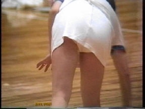 試合は同時進行だったのでどれを撮っていいか目移りすることもしばしばでした。中ほどに居るちょっと大柄なおかっぱの食み尻娘なども捨て難い魅力を放っていました。ぽっちゃり型の太腿むちむちポニーテール娘はアンスコがきついのか、しょっちゅう食い込みを直しながら屈むようなパンチラプレイの連続でした。アップになった太腿やお尻が堪りません。』