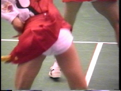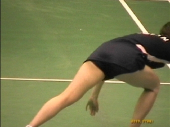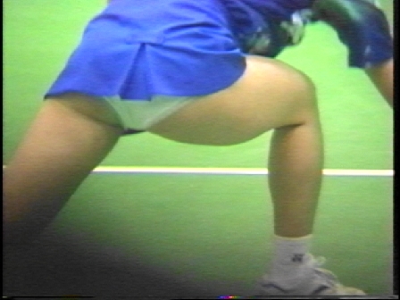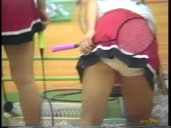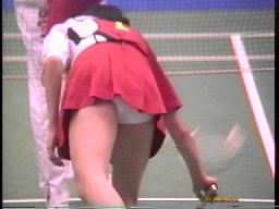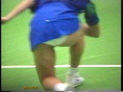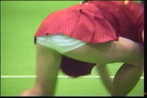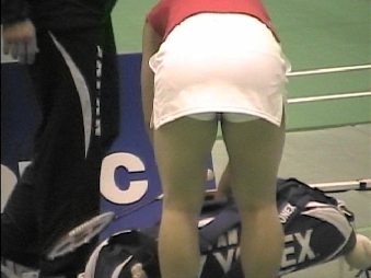 ダブルスでは濃紺スコートのNいしK州が痛快無比とも言えるパンチラ振りを発揮していて、受け損なって思わず床に手を着いて四つん這いのポーズになると後ろからパンツが丸見えになる刺激的な一コマもありました。