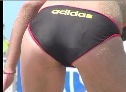 日本人選手は、S伯美香選手と浦T聖子選手のみですが、とくにS伯選手は、本ホームページ作でも既にお披露目済みの、ほとんどTバックまがいな“ちびビキニ”の奮発サービス