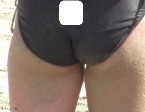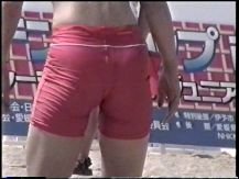 全篇ほぼ浦田選手を、後方or前方から撮影したものですが、まるで野球帽をはいてるみたいに堅そうなメッシュのビキニのいかにも窮屈そうなこと(画撮でもお分かりですね