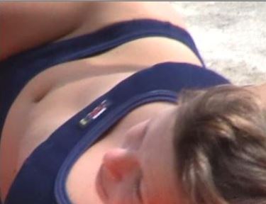 3185「がぶり撮り・怒涛のビーチバレー(115)」より(実際映像は、顔出しです)。