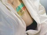 お腋の処理がちょっとのかたも。カメラ小僧たちを前にして、腋が甘い、といわざるをえません。