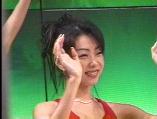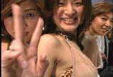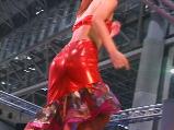 注目のその一は、ビキニや網タイツの美形お姉さんたちのSMticショーのステージ。ダンスの動きは速めですが、続いての(=メンバーは同じ)Gパンモードでお顔もばっちし。なお、さらに続いては、さらし巻きのパイオツちゃんモードも。