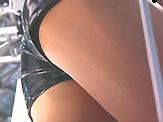 ヘソ出し金ラメミニスカ・スパッツ▼チラちゃんをたっぷりと10分撮り。続いては、本イベントではお馴染みの4人組。ミニスカちゃんとホットパンツちゃんを中心に、同じく10分。