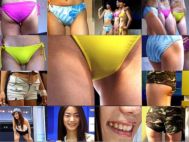 全体的におヘソちゃんが多かった“フォトエキスポ2004”の撮れたて映像、メインは、ご覧のビキニな3人ちゃんのオンステージ。超アップで、これでもかこれでもか、のたっぷり仕立て。
