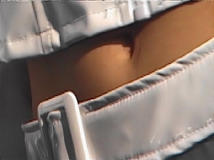 『いよいよ最終巻となりましたが、テンションは下がらず…冒頭の二人組は一人はロリ系? もう一人はムチムチお姉さん系で、ほとんどビキニ状態でエロいカラダの線が…ロリ系のほうのコは生パンはみ出してますし、もう一人のお姉さんはサービスで下から撮らせてくれました(^-^)/』