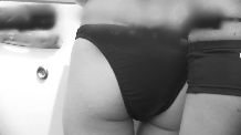 水着撮影では、ほの暗い照明のなかで、逆光に照らされて浮かび上がるモデルのビキニのなまめかしい姿がなんともいやらしく、揺れるヒップに釘付けでした。