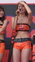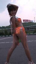 初めは街着のようなボディコンから、やがてハイレグ水着へと露出を拡げていきます。カメラマンたちの茹だるような熱気の中、涼しげな笑みを浮かべながらステージを闊歩する若い肢体の誘惑には勝てず、場内は混乱を極めるばかりでした。華美に過ぎず普通っぽい化粧がかえって我々を刺激するのでしょう。ヒップを揺らすと、たとえ中身が水着と判っていても興奮するのは、その演技やコスチュームにあるのかも知れません。なかには、きわどいTバックショーもあり、これも見逃せない一つになっています。