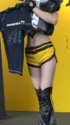 お披露目タイムでは、先程ステージを熱くさせたコスプレの彼女たちが勢揃いして、なかにはストリップショーまがいの尻丸出しのきわどい姿で現われる彼女もいて、再びカメラマンたちを熱くさせていました。