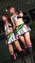 ステージ、とピット前にて。▼チラちゃん≒3ポイント、ビキニちゃん2ポイントetc.
