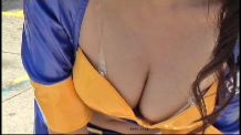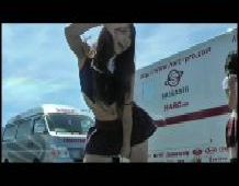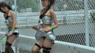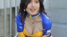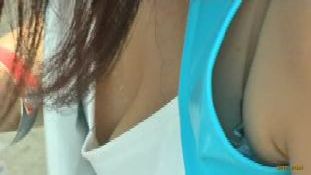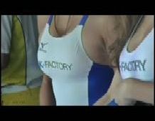 なお、空前の酷暑が生んだ名(?)シーンか、“レースクイーン最前線(27)”には汗のだらだら落ちちゃんが見られましたが、こちらには、(透明な)1玉↓ のオッパイちゃんが。