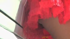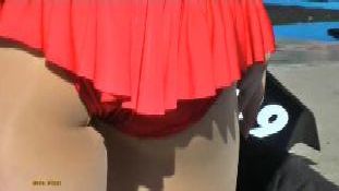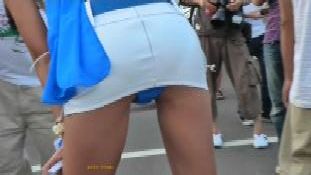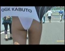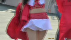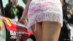 『はじめに登場する超ミニスカのギャルは、普通に立っていても見えるほど短く、身体のラインもクッキリでこれで下から撮るなというほうが無理な話でした(笑)。歩いているツーケーを追いかける、ぼくにしては珍しいカットも入っています。これを撮れただけでも鈴鹿に来た甲斐があったというものです』下履きの(ミニからの)透け色が、そこはかとなくセクシー(?)(16分)【本作のみのオリジナルシーン】