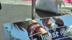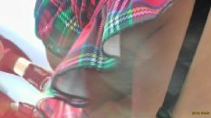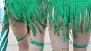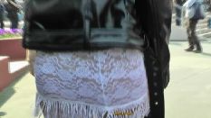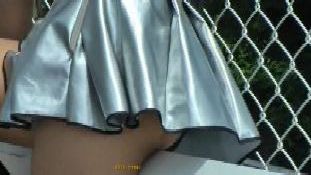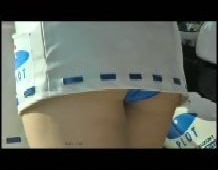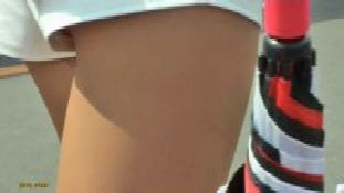 チラはチラでも、なんと、ミニスカ内部にタンポンの紐&器具をぶら下げたちゃんを発見! これじゃ、タンポンならぬアンポンタンじゃありませぬか