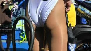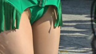 ハミ・ショーツちゃん↓ も一瞬だけじゃありませぬ、思い出してはUターンのエンドレスな未練撮り。「ローアングルはやめて下さい」いわれはしましたが、正面からでも見えてるじゃありませんか。ま、クィンちゃんも(何故か?)Uターンして、いそいそとピットまでお帰りなされましたが