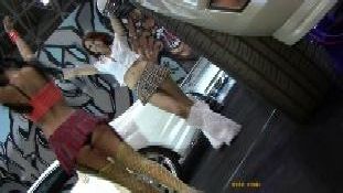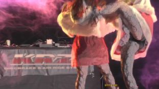 ポールダンスまじりにお二人の白ビキニちゃんたちのレゲエで始まったダンスですが、いつしかダンサーちゃんたちも増殖。オワリ頃には、ご覧の大所帯へ。