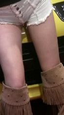 デニムのホットパンツちゃんの上から下からのど接写尽くしを初め、撮り放題のHさ。▼チラちゃん≒3ポイントetc.