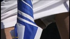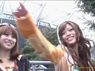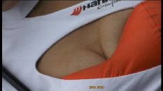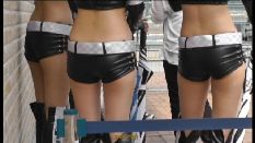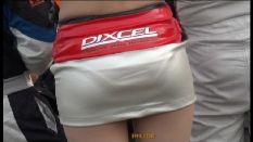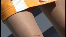 「ハロー! 私アヤシイ奴ジャアリマセン、安心シテ写サレテ下サイ」インタビューも含めながら、レース場をそぞろ撮り。おみ脚のエッチぃふわふわな黒ミニちゃんをたっぷりと。
