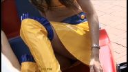 5011/「スウィング撮り・ラウンドガールの歌が聞える(5)」【恋する盗撮演奏家シリーズNo.82】……ビキニルックで、プラカードを高々と掲げステージを往復する、“K艇”ラウンドガール。かつて(1)(2)としてリリースしたものの別撮り――未発表映像集です。