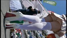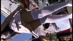 可愛く清純なお顔をしているわりには、スカートからこぼれてるのはTバックとしか思えませんちゃんを、ローアングルでたっぷりと。