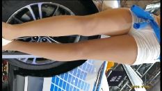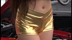 星条旗ビキニなお二人ちゃん……美的風味ちゃんたちによる、ぶ厚いハミ尻が踊るカーウォッシュ・ステージ(3分)