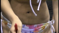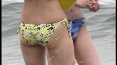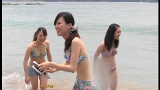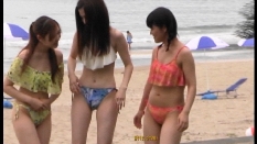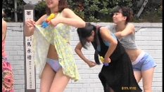 屋外ステージでの、私服→水着の3人ちゃん。