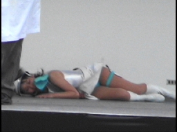 今回は、つごう6人ちゃんというゴーカ盤。みんな関西からのお客ちゃん、(ホットパンツ→脱いでビキニの)女のコたちが、前後左右、と、ステージに立体的に展開することでダイナミック感が増加。
