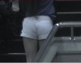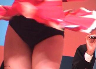 (66)に『おイロケ撒(ま)きちらしの『きれいなお姉さん』のコスチュームは、少し飛び上がっただけで、中のコスパン(白で、切れ込みが深い!)の▽地帯が、あたかもチビるが如く