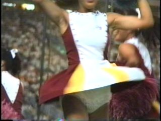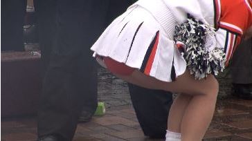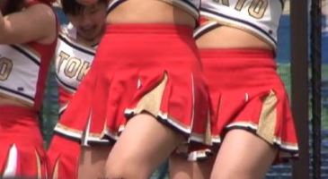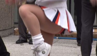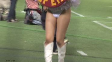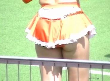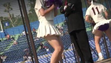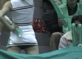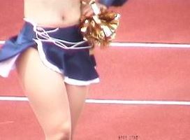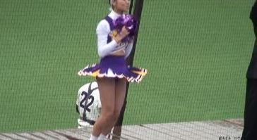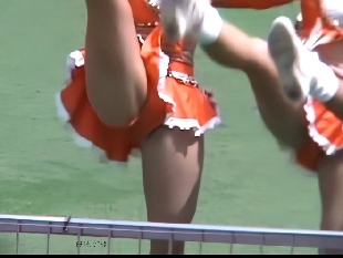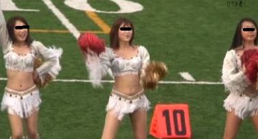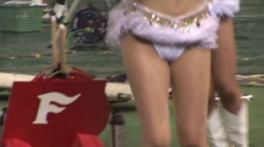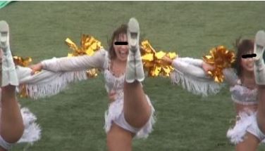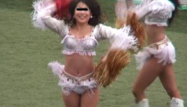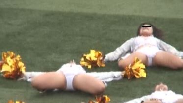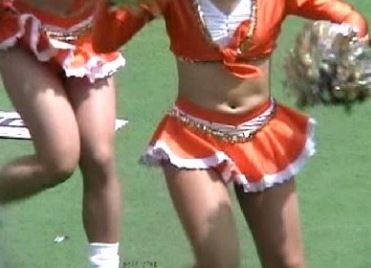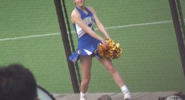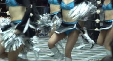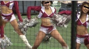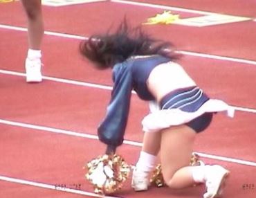 次は、※※※です。最初のチアは、なかなか美人です。アクションは少し控え目ながら、くるりと回って膝を跳ね上げる動作はとても可愛いです。ちらちら見えるアンスコも黄色でそそられます』