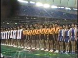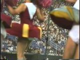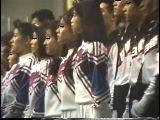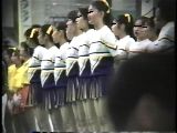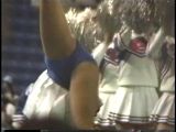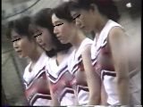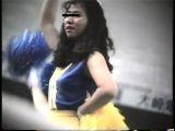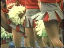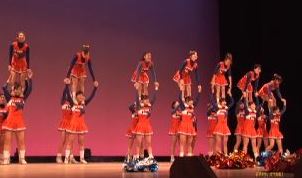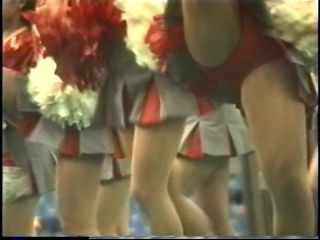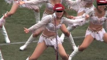 『最初は***です。まっ赤なブリーツ姿のチアは、大胆なスタンツや踊りで、アクションはまずまず。赤青混合チアは、ターン、キックなど平均的。黒チアは、体育会系の乗りで、キックあり。バトンガールは、ぴちぴちレオタードでの回転技の連続で飽きさせないステージとなっております。