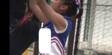 野外応援である(95)の続きのシーンから。冒頭は、アイドルticちゃんのお顔のどアップ(みなさんのやーらかそうなおワキもちょい)。