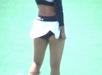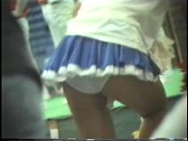 *****は正面近接撮影。スコートは、青、赤、白プリーツがあり、白のほうの中身は白アン。ひじょうに見やすい映像になっています。