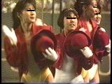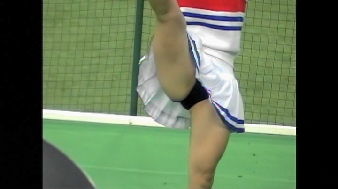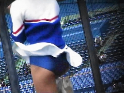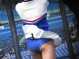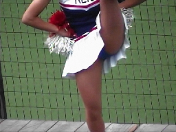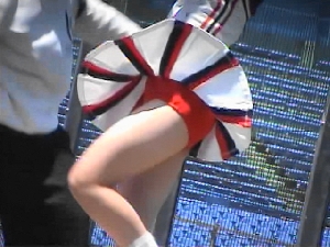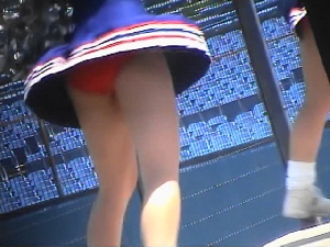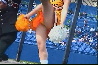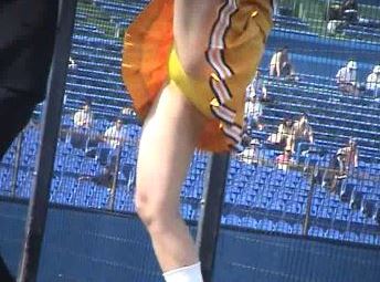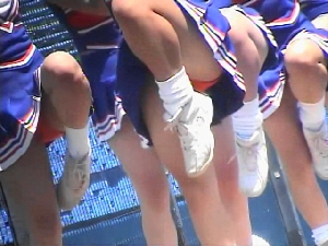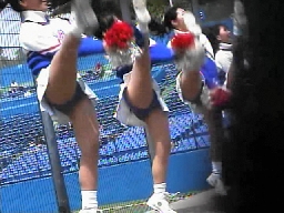 『次年度の最初のチアは本*です。赤はセーラー風コスチュームに身を包み、コンバットマーチに合わせて白のアンスコをチラチラ見せてくれました。パンチラを気にしてか下半身の動きは小さめでしたが、可愛い娘が多く、少し見えただけで凄く興奮しました。黒はコスパンでしたが、その分アクションに力が入り、ハイキックなど連発してくれました……』