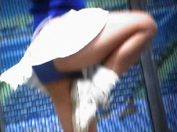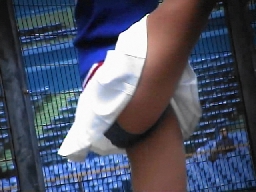 同じ白アンなら、というわけで、※※も撮ってみました。コスチュームは2種類あるようで、もう一つは普通の青のプリーツにコスパンでした。白アンチアは青のギャザーのスコートで、移動する時も狙い目で、席を動くたびにお尻が見えていました』