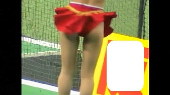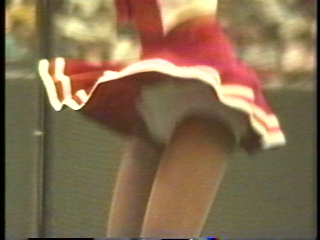 『※※※のその次はメルヘンチックな赤のスタイルですが、瞬間、ひらひらのアンスコが拝めました。中盤には、赤のノースリーブと黒のプリーツスコートのチアが登場しましたが、全般的に地味でした。