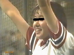 野外応援の明るさのなか、前半は、『可愛い』との評判を聞きつけての、お一人ちゃんの斜めからのアップ撮りを延々と。おとなしめチラは時たま程度ですが、2〜3度の大胆キックには、羞恥の汗また汗のワタクシ