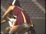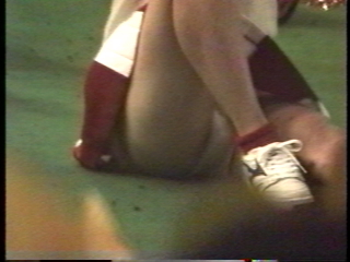 ハイ*ックあり、ターンあり。横から覗く、直角に曲げた膝蹴り時のヒップ〜太腿の“卵ライン”の、キョーレツな日射しに輝くナマナマしさには、もう、もももも、もも、絶句。十数分過ぎからは、ぐーんとアップ。ど、どっと、どアップ。しかも、腿だけじゃなく、腿々が交差した、またのまたも、ももも、もうもももももももも……