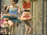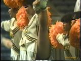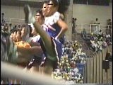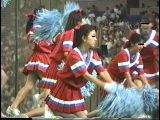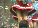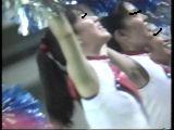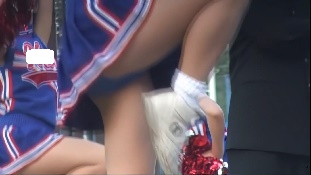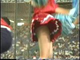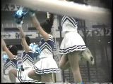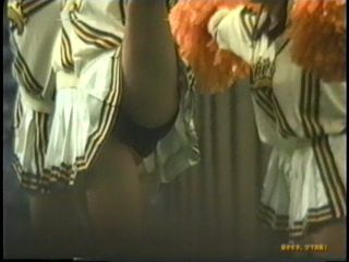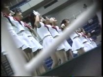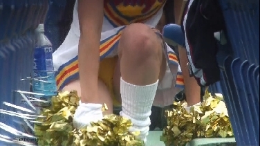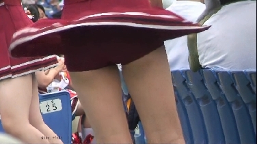 次は黒のスコートに赤のぴちぴちパンツがセクシーな※※※**です。体育会系の振り付けで、特に手前のむちむちした太腿がしきりにターンやお辞儀などを繰り返していて、目の保養になること請け合いでした。赤のチアもいて、こちらも動きは良く、ヒップシェイクやキックをさかんにやっていました。黒から青に着替えると、中身は青に変わっていましたが、今度もぴちぴちした感じだったので、たまりませんでした。お辞儀をすると、お尻の僅かにはみ出した下着がアップになり、いやらしく目の前にちらついていました。