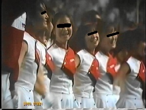 次はポニーテールの純白パンツが眩しい****※※です。プラカードを掲げながらくるっとターンなどをするだけですが、回ったりしゃがんだりする瞬間にぱっとスコートが捲れて、フリルのパンツがアップになったりすると興奮物でした。他にも、コンバットマーチや楽曲に合わせての演技も、振り付けが派手で見物でした。ぴちぴちの青パンチアもよく登場しましたが、演技の方は並でした。最後は後片付けを撮りましたが、お尻のアップが映ったりすると、艶めかしくてどきどきしたものでした。