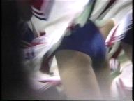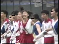 、スタンツetc. のローアン(しゃがんでの)撮影。K東とは違い、この当時、既にオナカ出しコスチューム、という、K西ならではのへっちゃらさ。赤コス+青チラのK外国語大(ヒント:「K都の外国語大」