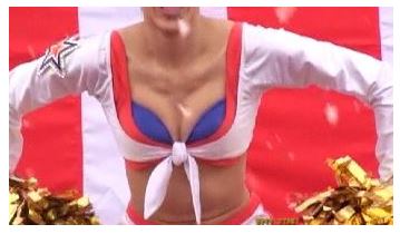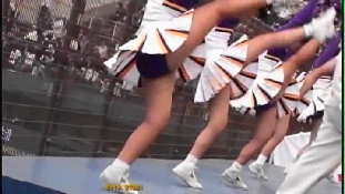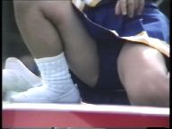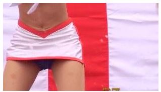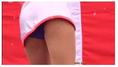 02:06 Xリ*グ応援(Sチーム)ネット越し』へそ出し白ホットパンツちゃんたち。