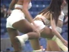 濃紺スコートに水色と濃紺のTシャツのK西酒造は大学の体育会系の乗りでした。途中ターザンスタイルのミニの衣装を着けたダンサー達がハイレグをちらつかせながらセクシーな踊りを見せていました。音楽タイムになるとチア達の下半身の動きが俄然良くなり腰を振る動きが多くなって紺のアンスコがよく見えていました。また途中ボンデージ姿やホットパンツ姿のダンサーが出て来て一際異彩を放っていました』
