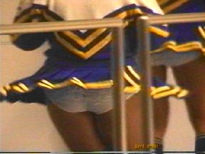 次も同じ会場からです。下から撮りたかったんですが横からの方がガラスが邪魔にならないので敢えてこの角度からにしました。すると遠近均等に撮れてスコートの捲れ具合など一覧でき、むらのない画が撮れました。O子やK土もターンなどをすると横からでもはっきりとパンチラの模様を捉えることが出来ました。特にK土のピンクレディーは演技時間が長く振り付けも過激なのが多くとても気に入っていて今回も刺激的でとてもよかったです。また席に戻ったK土チアを撮っていると御辞儀をした瞬間数少ないパンチラも何度か撮らせて頂きました。