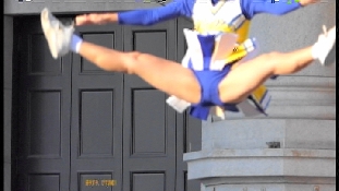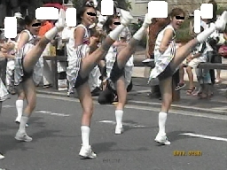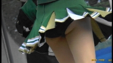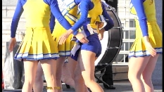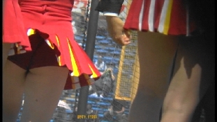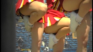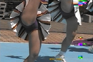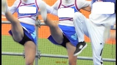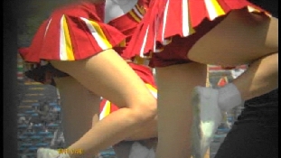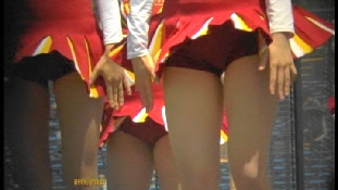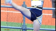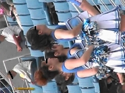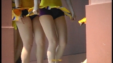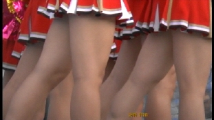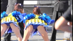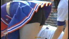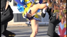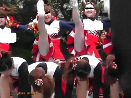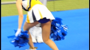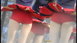 “演奏家”さん、談、『青スカート×黒スパッツ@HS大学応援団のチアですAキック有りで動きが良いです。途中から前方で撮影しています』時々のハイキックetc.