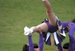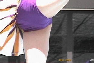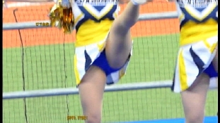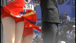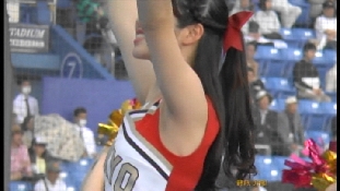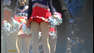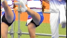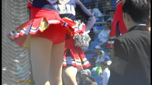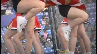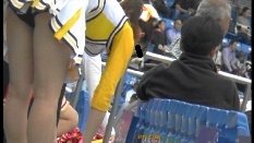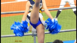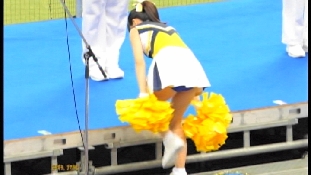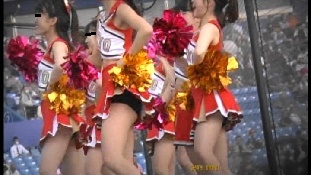 次の、緑のJ*日本※※のチアはセッティングの最中にも無防備にこちらにお尻を向けてはみパンなど披露してくれ、ちょい興奮です。T北らしくふっくら色白チアが多く、むっちりした太腿か堪りませんでした。演技では真横に脚をがぱがぱ闘いての観客サービス振りを発揮していました。