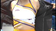 次の**Kは入場すると席で立って何やら準備中のチアがいて、早速何度も屈んでは可愛いお尻を見せていました』